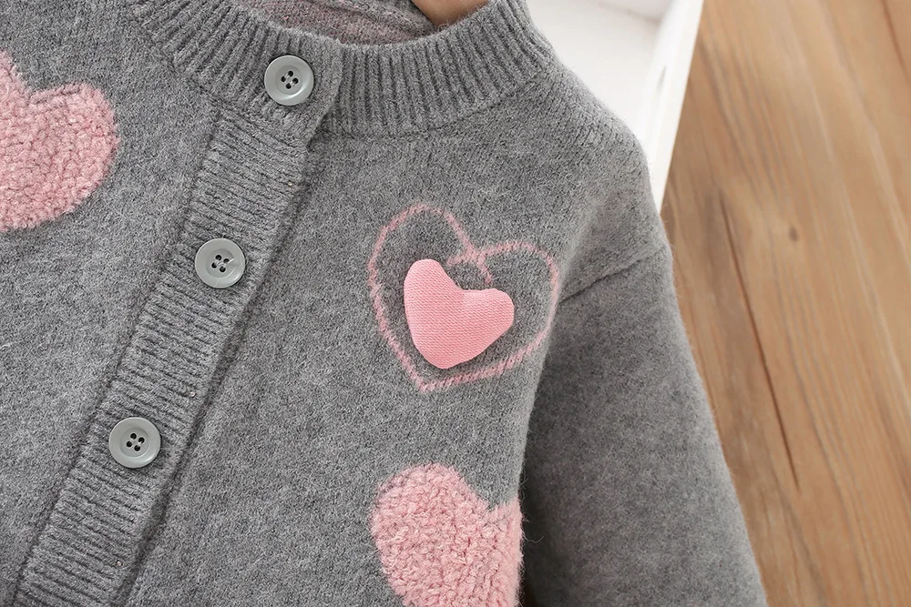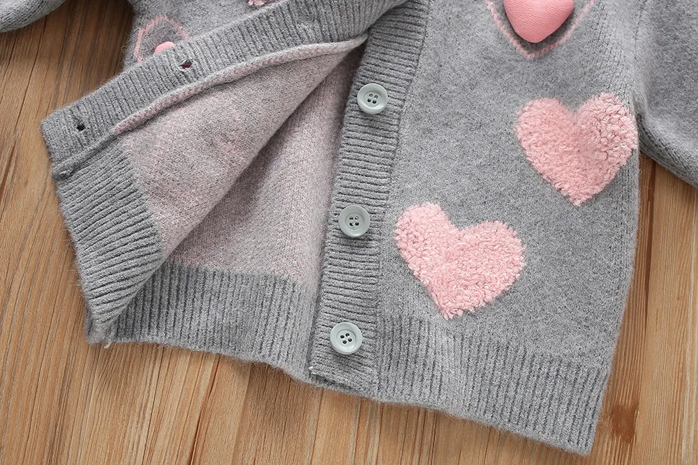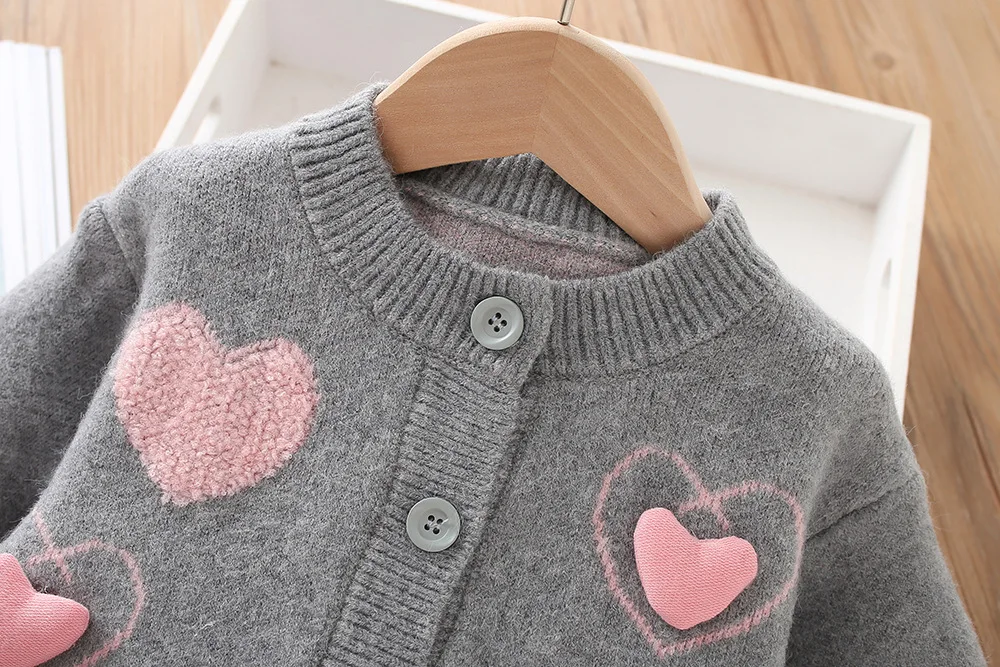 Spring & Autumn Girls Clothing Set – Pink Heart Sweater and Tulle Skirt 2-Piece Knitwear Outfit for Kids (Ages 2–6)