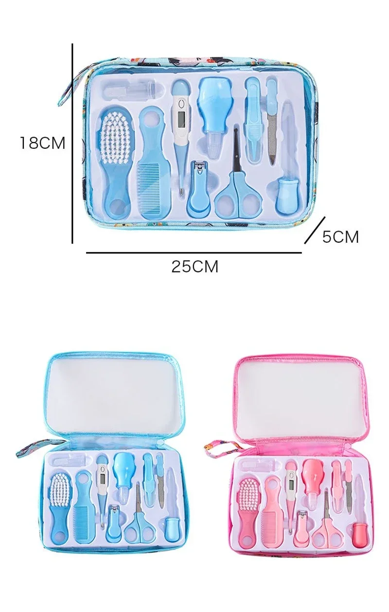 Care & Cleaning Set- 10 - Piece Baby Newborn Nail Clipper Set, Safe Comb & Brush Gift Box