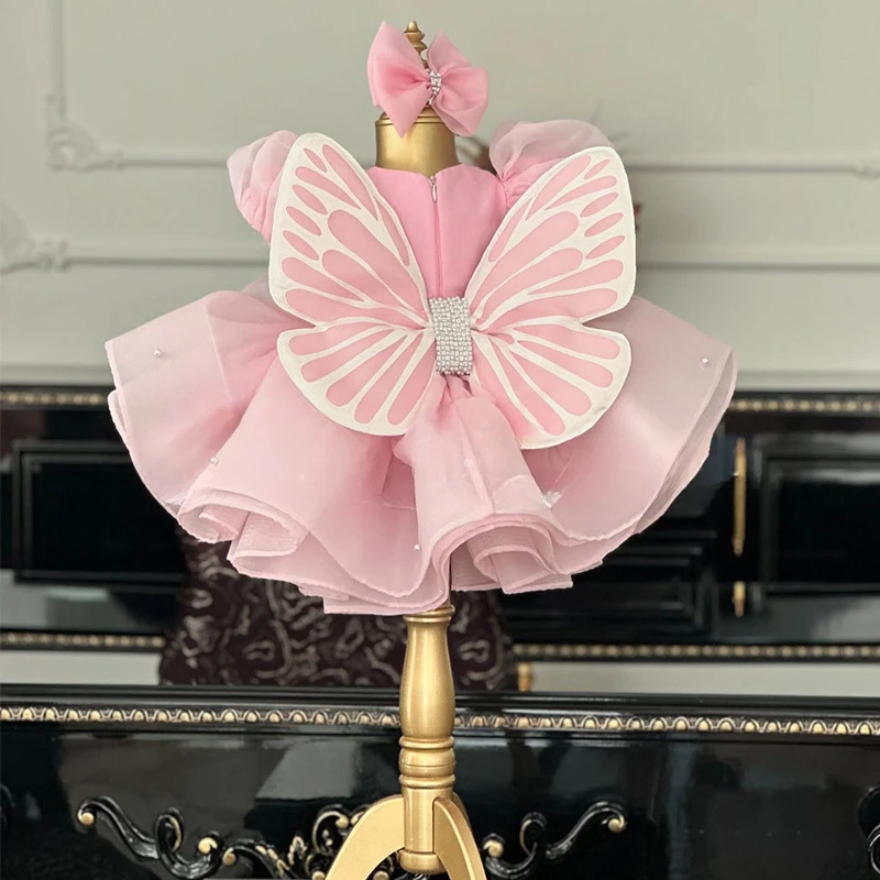 European and American girls party dresses 2025 children's princess puff sleeves piano first birthday